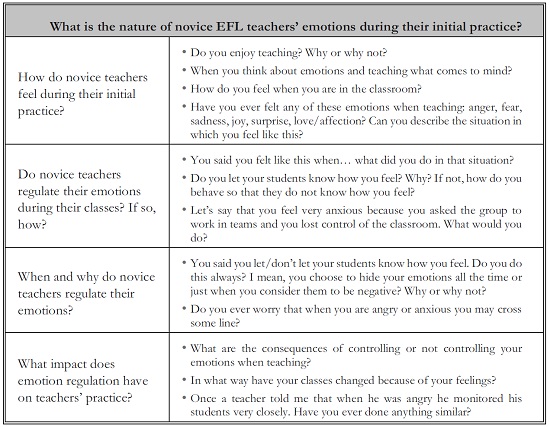 The main objective of this inquiry was to discover how novice teachers regulate their emotions during their initial practice. In order to discover this, the following questions were designed.