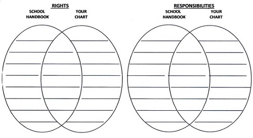 Read in your school handbook the students’ rights and responsibilities and compare them with the ones that you wrote in the chart. Are they similar? Are they different? Represent them in these Venn diagrams.