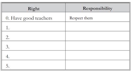 Fill the chart. List 5 rights that students have at school and the responsibilities that go with them.