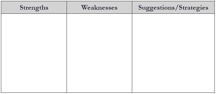 Although strategies-based feedback can be highly beneficial for students, teachers should keep in mind some pedagogical considerations when implementing it. On the one hand, for this type of feedback to be fully effective, it should be preceded by direct instruction on what learning strategies are and how they can be used. In fact, when direct instruction in learning strategies is supplemented with strategies-based feedback, students are likely to use strategies more and to do it more effectively than they did before. On the other hand, teachers also ought to think about time, context, and theoretical knowledge. Enough time and training are required for both students’ appropriation of learning strategies and teachers’ implementation of strategies-based feedback. Therefore, in order to make the latter effective, teachers need to become familiar with learning strategies and feedback models, consider the characteristics of their school context, and make sufficient class time to train their students on what learning strategies are and how they can be used.