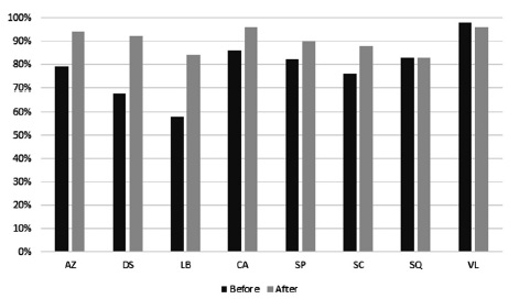 After comparing the results, we observed a positive change in students’ oral performance. Thus, we concluded that the strategies instruction and feedback that students received helped to improve their performance. Figure 3 illustrates the improvement in the results after the intervention.
