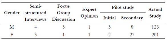 Data collection instruments. The current study has two dimensions which entail collecting data to develop the scale and to analyze data regarding research questions; therefore, various data collection tools were used in the study. The data to validate the scale were collected through four main instruments, which consist of the CDQ, semi-structured interviews, focus group discussions and expert opinions. The participants involved via these data collection tools are shown in the table below.