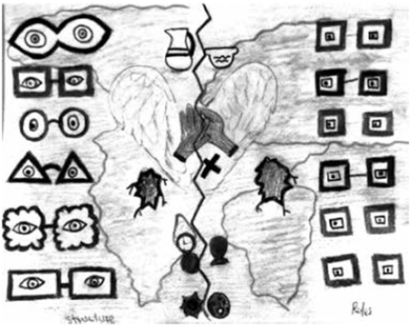 She reflected on the idea that current issues within her context should be taught in schools before students go away to college. This was apparent in her artwork (see Figure 2 below), in which she added: