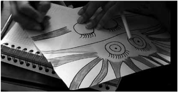 Given that we were working with a particular group and context, the data were collected keeping a case study approach in mind. According to Baxter and Jack (2008), a case study is an approach to research that facilitates exploration of a phenomenon within its context using a variety of data sources. This decision ensures that the issue is not explored through one lens, but rather a variety of lenses that allows revealing and understanding of multiple facets of the phenomenon (p. 544). In order to collect the data, we took field notes before, during, and after each session. During the sessions, the students provided their reflections within focus group discussions, which were recorded, transcribed, and analyzed. In the last session, the students created and commented on their own artwork, which was also recorded, transcribed, and analyzed.