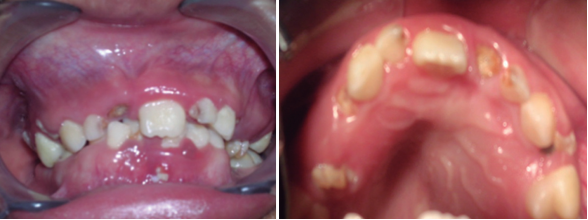 El caso presentado de un niño de 7 años apoya la mayoría de las manifestaciones publicadas en la literatura. Un QD asociado a piezas anterosuperiores dará lugar a la falta de erupción del diente y por tanto conduce a problemas estéticos. Por otro lado la ausencia de incisivos central y lateral producirá un impacto en la psicología del niño, de ahí que se pretende resaltar la importancia de una historia clínica completa que conlleve a un diagnóstico oportuno para su derivación al odontólogo especialista y si fuese necesario interconsulta con otras especialidades médicas para su tratamiento adecuado. Si bien la mayoría de las lesiones suelen tener presentación benigna, pueden generar grandes asimetrías y deformidades faciales a largo plazo.