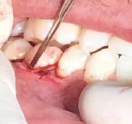La recesión a tratar presenta una altura de 2mm, la profundidad de sondeo fue de 2mm en mesial, 2mm en distal y 2mm en bucal. La pérdida de inserción de 4mm.