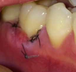 El primer control postoperatorio se realizó a los 3 días de haber realizado la cirugía y se verificó la correcta posición del colgajo desplazado hacia coronal, el mantenimiento de la tensión de las suturas y las incomodidades del paciente. Se observó un inicio del sanado y una completa cobertura del injerto.