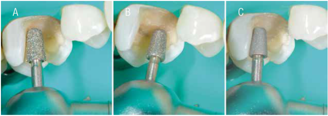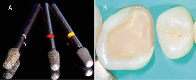 The preparation design and convenience form were carried out considering the existing tooth conditions 14) (16. The 3131, 3131F and 3131FF Diamond burs (KG Sorensen, Barueri, SP, Brasil) were used for preparation design (Figure 5).