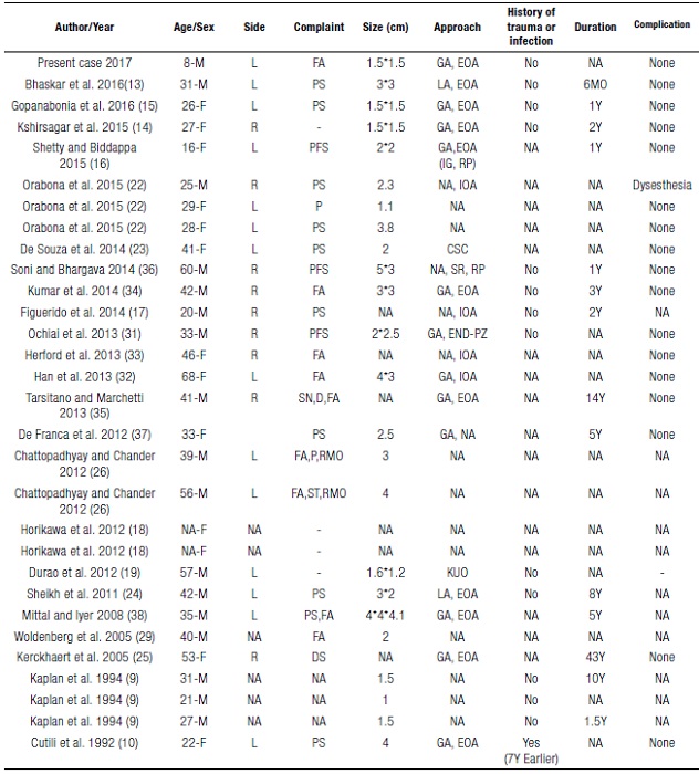 Keywords: Odontogenic tumorOdontogenic tumor,MandibleMandible,OsteomaOsteoma,AngulusAngulus,TreatmentTreatment.