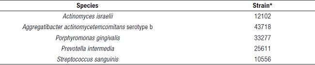 From a clinical point of view, Actinomyces israelii (A. israelii) and Streptococcus (S. sanguinis) have been considered beneficial colonizers of the dental plaque. On the other hand, P. gingivalis has been associated with periodontal infections, and a higher proportion of this strain has been found in sites with gingival bleeding, inflammation, and suppuration on individuals with advanced periodontitis 4. Also, Prevotella intermedia (P. intermedia) is closely related to inflammatory conditions of the oral cavity, and the presence of Aggregatibacter actinomycetemcomitans (A. actinomycetemcomitans) has been related to specific periodontal infections 1.