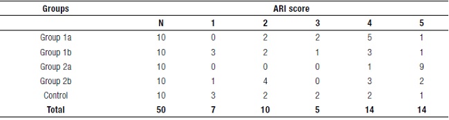 The frequency distribution of the ARI scores among the groups was evaluated by descriptive statistics. Significance for all statistical tests was set at p<0.05. All computational work was performed with statistical software (SPSS version 20, SPSS Inc, USA).