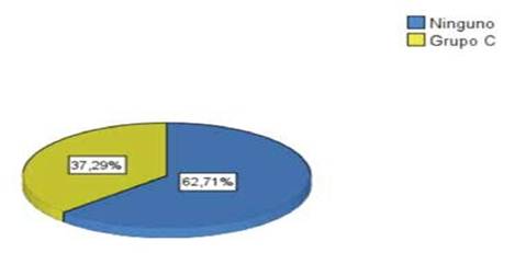 En los 59 niños y adolescentes que presentaron Streptococcus mutans se identificaron 22 pertenecientes al genotipo C (figura 1). No encontrándose diferencias estadísticamente significativas en cuanto su distribución según el sexo X2= 0,192 p= 0,789.