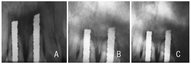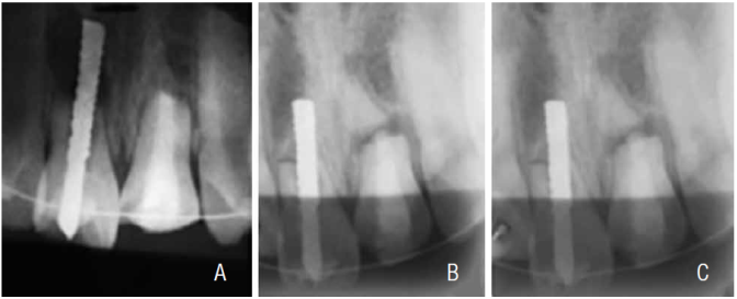 The radiographic examination performed every 90 days can provide us with an idea of the osseointegration process, observing the radio-opaque zone located around the trans-endodontic. Depprich implant (14), in the same manner, the considerable decrease of dental mobility comprises another favorable parameter that could afford us indications of the signs and symptoms, such as pain, inflammation, or bleeding.