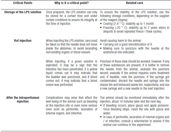 Our main goal was to provide a guide to prepare LPS in saline solution and basic steps on how to perform an intraperitoneal injection. Each investigator should adapt the protocol according to his/her research proposal. The authors hope this guide is informative.
