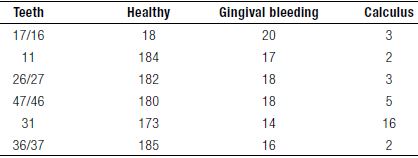 With regard to the CPI, Table 3 demonstrated that dental organs 36/37 had has the higher healthy score, compared to dental organs 16/17, which also exhibited a higher rate of bleeding.