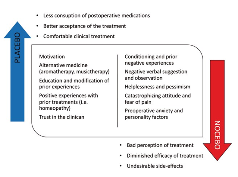 Placebo/nocebo responses occur within a synergy of psychological and physiological variables widely influenced by different individual and contextual factors. This amalgamation of variables and factors are critical for obtaining a response (positive or negative) and each clinical circumstance around a placebo/nocebo effect must be individually analyzed. Specifically, the factors related to the patient and to the clinician-patient relationship must be weighted individually to assess their impact in the patient response to certain treatment (4).