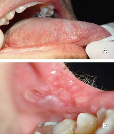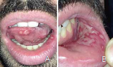 Se caracteriza por la presencia de úlceras superficiales dolorosas con margen eritematoso bien definido y centro pseudomembranoso de color gris amarillento (5), localizadas en mucosa no queratinizada (5-6). EAR se presenta inicialmente como una mácula eritematosa y con una sensación de ardor prodrómica característica que dura de 2 a 48 horas antes de que aparezca una úlcera (5).