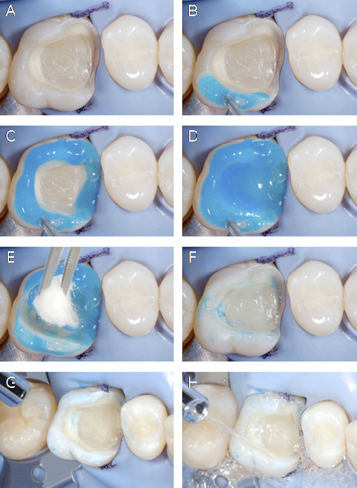 Tratamiento con el sistema adhesivo en la preparación cavitaria para recibir las coronas parciales de cerámica onlay
