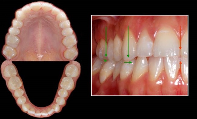 Después, los márgenes interproximales se verificaron en busca de excesos de cemento con la ayuda de un raspador agudo desde la superficie oclusal hacia la región cervical. Se dejó un pequeño exceso de compuesto en el margen vestibular y lingual (flechas verdes), solo para asegurarse de que toda la brecha marginal se rellenara con cemento resinoso de cementación. Este exceso de compuesto se eliminó con gomas pulidoras. Se utilizaron puntas de pulido de goma, bajo enfriamiento con agua a baja presión y rotación entre 14,000 y 20,000rpm. Las puntas eliminaron el exceso de cemento resinoso, que estaba visible. El pulido de los márgenes para fortalecer el brillo se realizó utilizando una copa de silicona amarilla a una velocidad de rotación de 5000-7000rpm, seca y con muy baja presión, posteriormente con agua como irrigación. En el último paso, los márgenes se limpiaron y se pulieron con un cepillo sintético suave. Al final se utilizó un explorador agudo y se verificó la adaptación de los márgenes. Los márgenes de restauración eran invisibles e imperceptibles (Fig.18A & 18B).