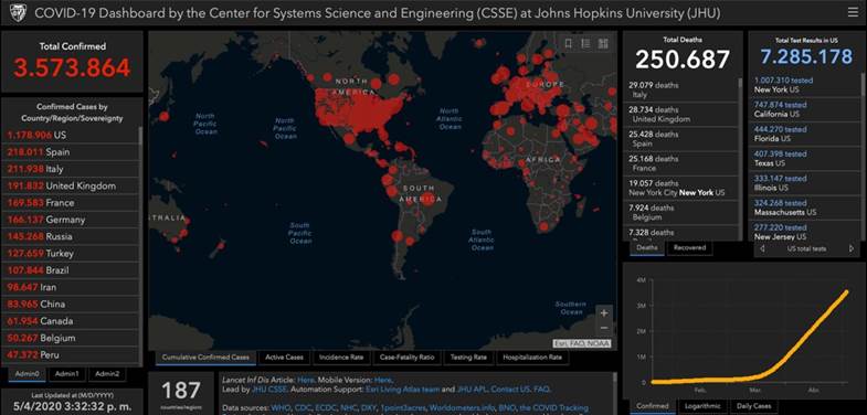 The COVID-19 pandemic has thrown the world into an economic and healthcare crisis. There are more than 3,573,864 cases globally and more than 250.687 deaths (COVID-19 Update: 04/05/2020 https://coronavirus.jhu.edu/map.html) (Fig.1). The worldwide ongoing experience of COVID-19 is creating enormous uncertainty. Indeed, many countries have adopted unprecedented measures to curb the spread of the virus, such as large-scale use of isolation and quarantine, closing borders, imposing limits on public gatherings, and implementing nationwide lockdowns. Consequently, these measures had serious repercussions on the economic and social profile of the nations.