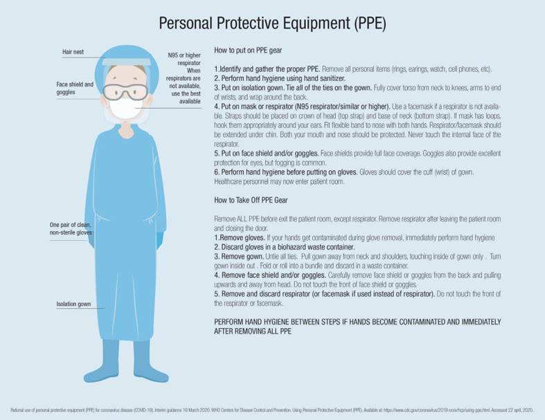 World Health Organization (WHO). Rational use of personal protective equipment for coronavirus disease (COVID-19) and considerations during severe shortages; 2020 (cited 2020 Apr 26). Available from: https:// www.who.int/publications-detail/rational- use-of-personal-protective-equipment- for-coronavirus-disease-(covid-19)-and- considerations-during-severe-shortages.