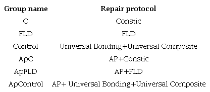 Following repair protocols were preformed for the relevant groups:
