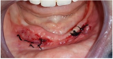 The excision of the epulis fissuratum was performed with conventional surgical excision. The depth of the vestibule was preserved. Healing was done by secondary intention (Fig. 7).