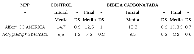 Los resultados obtenidos en el presente estudio, demostraron diferencias significativas en la microdureza superficial entre la resina acrílica de PMMA Alike®, GC AMERICA INC y la resina bisacrílica Acryptemp®, Zhermack S.P.A., después de ser expuestos a una bebida carbonatada, lo que permite rechazar la hipótesis nula y aceptar la hipótesis de investigación.