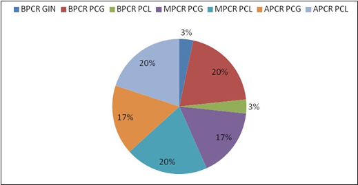 De acuerdo a la misma figura, de la totalidad de la muestra, tanto para los de niveles bajos como para los que presentaron niveles medios de P-CR, el porcentaje mayor de la muestra fue representado por los pacientes sin enfermedades sistémicas asociadas. Situación que varió en el grupo con niveles altos de P-CR, donde del total de 37%, se observó un porcentaje mayor de pacientes con niveles elevados de P-CR (superiores a 3mg/L) y enfermedades sistémicas asociadas (20%), esto respecto al grupo correspondiente a los pacientes con niveles elevados de P-CR sin enfermedades sistémicas asociadas.