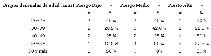 En la Tabla 2 se resumen los resultados de los grupos por edades con mayor riesgo cardiovascular según los niveles de P-CR. El rango con mayor riesgo cardiovascular, osciló entre los 40-49 años.