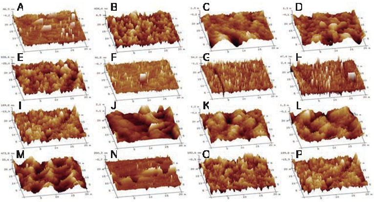 An Atomic Force Microscope (AFM) (Bruker, Dimension Edge model, USA) was utilized to evaluate the morphology and roughness of the silanized surfaces before and after remaining in citric acid on a 20-µm x 20-µm surface; the quadratic Roughness (Rq) of each specimen was obtained.