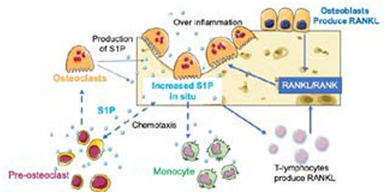 S1P signaling is critical for modulating the migration of monocytes and macrophages from the bloodstream to affected bone and bone tissues. These monocytes and macrophages are known as osteoclastic precursors, leading to bone loss (16,34).