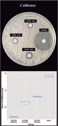 In this study, the antibacterial and antifungal capacity of three commercially available mouthwashes with different concentrations of CHX (0.12%, 0.06%, and 0.03% respectively) was evaluated in vitro. All samples showed some degree of antibacterial and antifungal effect.