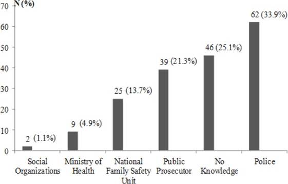 In answering the question where to report a case of child abuse; the police was mostly answered by the participants, and a quarter of the participants stated that they had no knowledge on this (Figure 1).