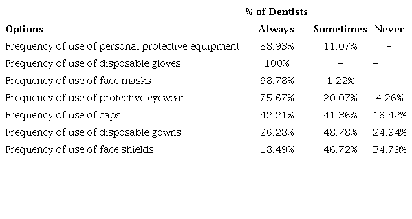 Keywords: Attitudes, covid-19, dentists, knowledge, personal protective equipment.