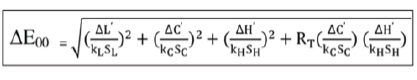 ΔL', ΔC' and ΔH' describe changes in colour, hue and lightness differences between two samples. SL, SC and SH are weighing functions for colour, hue and lightness parameters. KL, Kc, and KH are factors regulated by different observed parameters and were accepted as 1 according to other studies (17). The CIEDE2000 colour difference formula's parametric factors are set to 1 in this study. The detectability threshold was determined as ΔE00>0.8 units and the clinical acceptability threshold as ΔE00≤1.8 units (16).