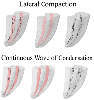 Lateral compaction is considered a simple, low-cost filling method and promotes sealing (9), with less overextension of root canal filling material (3). However, cold gutta-percha may not allow adaptation to the irregularities of root canals, allowing the presence of voids between the guttapercha cones and root canal (10, 11). To overcome these disadvantages, thermoplastic root canal obturation methods are proposed (1, 12, 13).