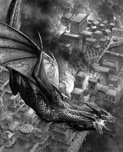Una gruesa y alta serpiente con garras y alas es quizá la descripción más fiel del dragón. Puede ser negro, pero conviene que también sea resplandeciente; así mismo suele exigirse que exhale bocanadas de fuego y de humo. Lo anterior se refiere, naturalmente, a su imagen actual.