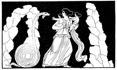 En la Ilíada los dragones son mencionados en los cantos II y XI, descritos como serpientes comunes (Homero 132,307-308). En otros textos de autores griegos o romanos, los grandes dragones suelen estar al servicio de alguna divinidad, pero también pueden estar asociados con el miedo, el desorden y la muerte. En las Fábulas de Higino, (64 a. C.-17 d. C.), Pitón, serpiente concebida sin compañero alguno por Gea, la Madre Tierra, persigue a Latona, quien esperaba hijos del dios Júpiter, debido a una premonición que anunciaba su muerte por el parto de la titánide. Gracias a la intervención de Júpiter y Neptuno, Latona encuentra refugio en la isla Ortigia.4 Higino menciona que "Pitón, al no hallarla, retornó al Parnaso" (230), donde desempeñaba funciones proféticas. En la isla Ortigia, luego llamada Delos, Latona da a luz a los dioses gemelos Artemisa y Apolo. A los cuatro días de nacido, Apolo busca a Pitón para cobrar venganza por los ataques a su madre. Al asesinato de Pitón por Apolo, quien utiliza arco y flechas, le sigue la instauración de los Juegos Píticos en honor a su victoria. En la Biblioteca (siglos I-II d. C.),5 Apolo se apodera del oráculo de Delfos, presidido por la titánide Temis en el monte Parnaso, tras matar a la serpiente Pitón, guardián del recinto (Apolodoro 48). En la tragedia Ifigenia entre los tauros de Eurípides, escrita entre el 410 y 420 a. C., Pitón también aparece como protector del oráculo de Delfos, al igual que la propiedad de dicho santuario también recae en Temis (399) (ver imagen 2).
