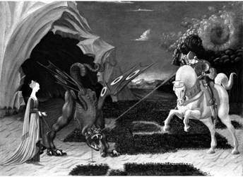 Jorge de Capadocia, además de ser una mezcla del predicador y el caballero, es el matadragones más famoso de la literatura cristiana. Su leyenda es conocida, principalmente, a través de La leyenda dorada. La imagen de este mártir, montando un caballo y venciendo a un dragón (con la forma de un guiverno), ha aparecido en múltiples obras artísticas, tanto pinturas como esculturas.17 Es importante resaltar, sin embargo, que se trata de