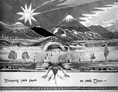 El origen de los dragones en el mundo imaginario de Tolkien se muestra como parte de una nueva versión de la antítesis entre las tinieblas y la luz, aunque independiente de cualquier cultura. Esto se aprecia en el título de "Señor Oscuro" de Morgoth, el deterioro físico del mundo por su presencia34 y en su fortaleza de Angband, lugar sombrío donde habitan los grandes monstruos del mundo, incluyendo los dragones. En la última guerra contra él, Morgoth despliega un ejército de dragones alados. Sin embargo, el medio elfo Eärendil, quien consigue la ayuda de los Valar,35 entra en batalla a bordo de Vingilot, su brillante barco volador,36 sobre Angband y su torre-volcán Thangorodrim "Antes de salir el sol, Eärendil mató a Ancalagon el Negro, el más poderoso del ejército de los dragones, y lo arrojó del cielo; y cayó sobre las torres de Thangorodrim, que se quebraron junto con él" (El Silmarillion 296).37 Mientras Morgoth es desterrado al Vacío Intemporal, Eärendil es llamado "Gil-Estel, la Estrella de la Gran Esperanza" (294). Eärendil, por lo tanto, se identifica con la luz que anuncia el amanecer de una nueva era, en contraste con la oscuridad de Morgoth y su dragón Ancalagon. Eärendil se muestra como un salvador del mundo, gracias a su rol de intercesor ante los Valar y el ser "un varón de dolores, familiarizado con la pena" (Shippey 281). Obras posteriores destacan por el uso de la figura del domador de dragones (ver imagen 10).