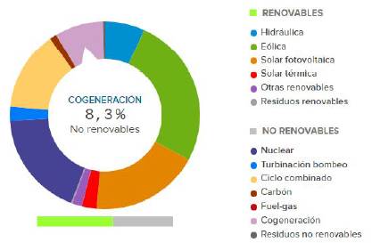 En España, la energía eólica y la energía solar son las más utilizadas, como se observa de la figura 1, que representa los porcentajes del origen de diferentes fuentes energéticas renovables y no renovables, considerando los datos obtenidos en 2023.