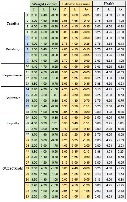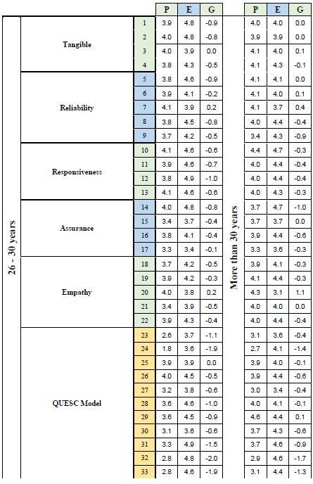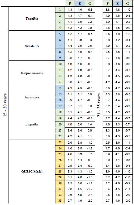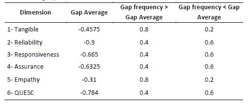 QUESC correspond the discrepancy between customer expectations and their perceptions of the service delivered. In this study, this gap has the value of (-0.784). The authority of the customer expectations is influenced by the extent of personal needs and past service experiences.