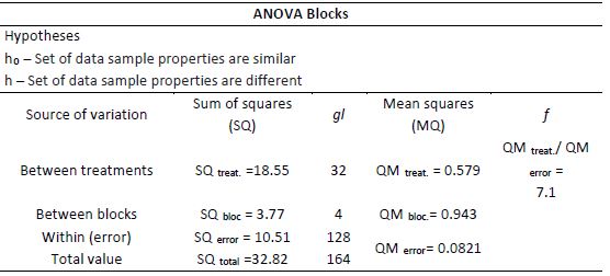 Another analysis performed is blocking statistics (Table 2), is the organization of experimental units into groups or blocks that are similar to each other. In this study, the number of 40 questionnaires was divided into five blocks, applying the questionnaire five times in different periods. This analysis reduces the sources of variability and therefore leads to greater accuracy (Aschbacher, 1971).