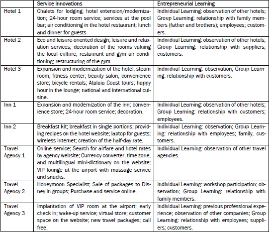 Innovation and Entrepreneur Learning in the Tourism Sector: Cross-Case Analysis in Small and Medium Enterprises in the city of Aracaju, Sergipe