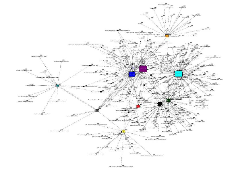 Considering that the entities that make up the pointed network have a set of associates, partners, and services, by including them in the network, we have the possibility of more interconnection between social agents. This question raises the chance that such a network will come out of a condition with strong, closed ties and open to a network with weak ties and structural holes that can add to it new knowledge while maintaining and breaking connections between the actors. For this, produced a sociogram with the 'possible network' (Figure 3) established between the social agents and their primary connections.