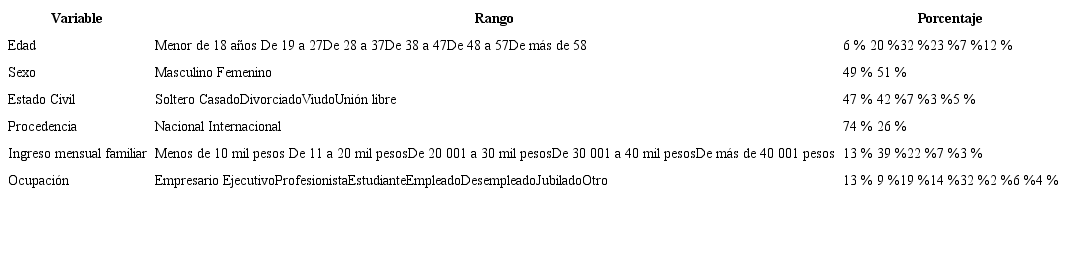 Del mismo modo se demuestra en una tabla el perfil de los residentes seleccionados, con la misma clasificación que la de los turistas.