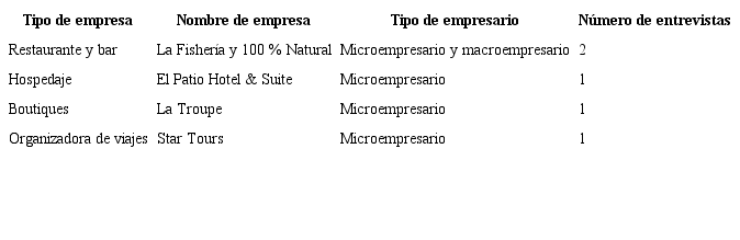 A continuación se presenta en dos tablas la elección de los empresarios turísticos y actores políticos entrevistados: