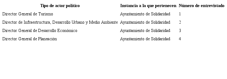 A continuación se dividirán las concepciones de los sujetos sociales clave seleccionados para el desarrollo de la dimensión de la socialidad. En primera instancia se presentarán los relatos compartidos por los agentes políticos, los cuales se obtuvieron por medio de las entrevistas realizadas. Cabe hacer mención que se tuvo un acercamiento a las áreas que tienen relación con el turismo del Gobierno Municipal de Solidaridad.