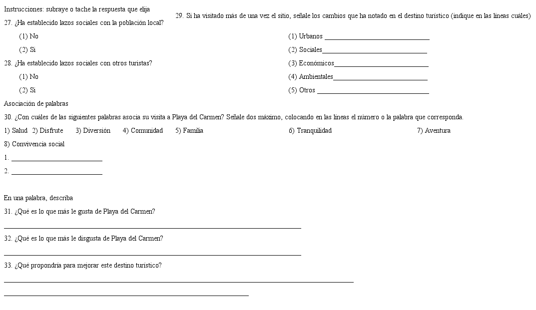 Los turistas frecuentes consideran que dicho tipo de problemáticas sociales son derivadas por la intensificación del turismo, creen también que uno de los motivos por los que se ha intensificado las implicaciones sociales mencionadas, es por la apropiación de gente extranjera imponiendo sus hábitos y costumbres, o incluso la apropiación de ciertos establecimientos turísticos que generan un ambiente distinto al lugar, provocando la incomodidad de las personas. Por supuesto, cabe hacer mención que hay turistas a los cuales el sitio turístico, les provoca mucha tranquilidad y comodidad, aunque es un número mínimo de los 23 entrevistados.